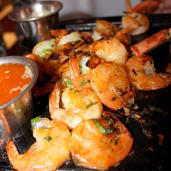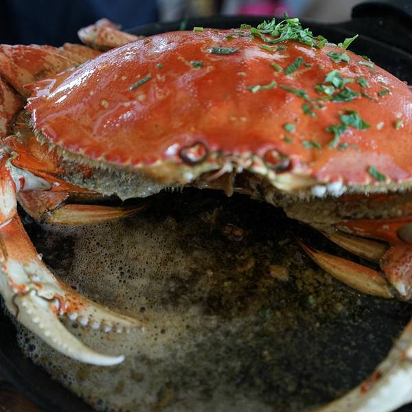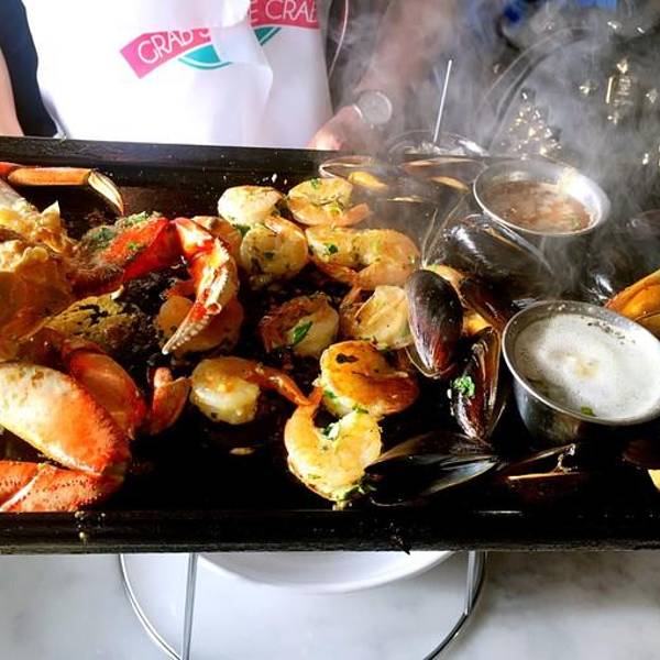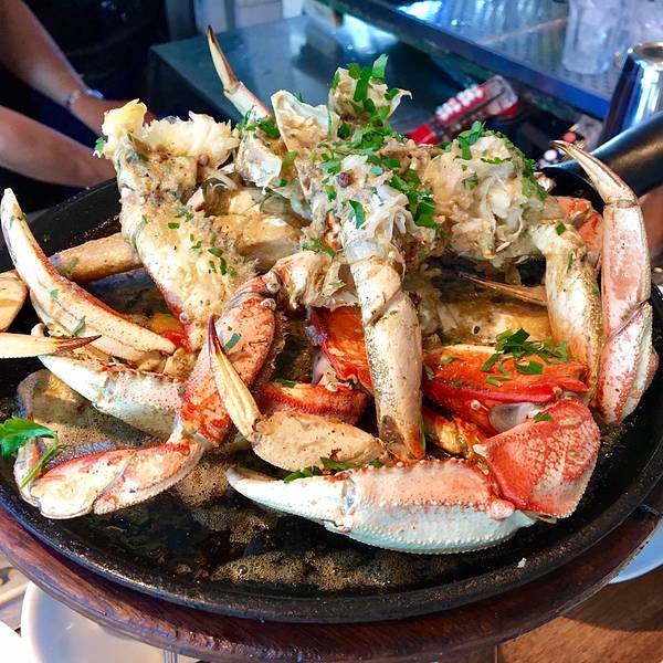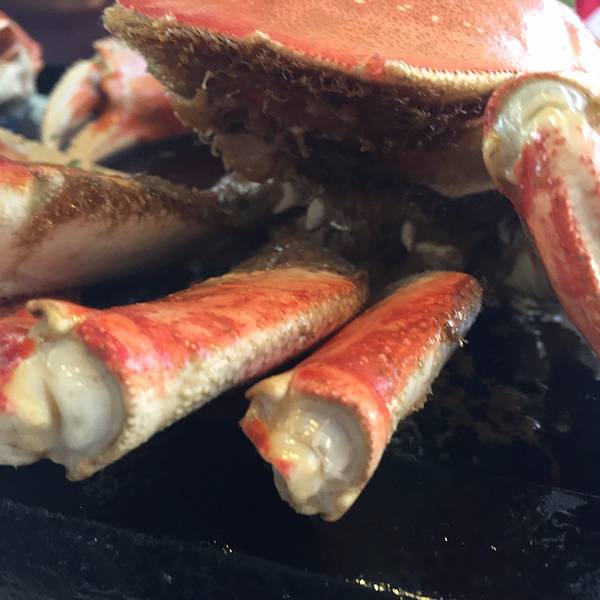 最终也没等太久,大概30分钟就进去了。比起国内海边城市闹市地段餐厅的价位,这里的价格还算公道,螃蟹1磅约20美元左右,我们点了铁板螃蟹+大虾的套餐。