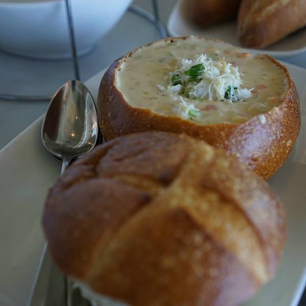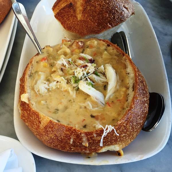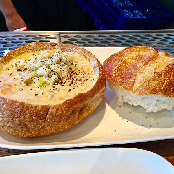 铁板全蟹味道很不错的酸面包Crab Chowder