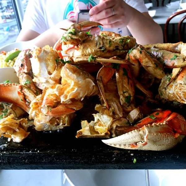 由于担心2小时免费停车被罚,我们准备挪车位,一个人留下来等位子。店里人太多,不允许一个人等3个人的位子,必须...别人推荐的有这家,39号是有一堆的商店餐馆,一定要到楼上(二楼)的Crab House,排队的人超多。