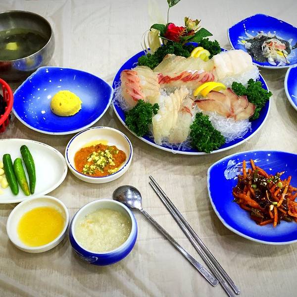 位于釜山有名的海鲜市场附近,受到了很多韩国朋友的推荐。料理种类很多,如果不喜欢吃生鱼片,这家的烤鱼也会让你饱餐一顿。个人非常喜欢烤的脆脆的鱼皮。推荐什锦烤鱼,有带鱼、石斑鱼等沿海的新鲜鱼类,绝对可以满足大家的食欲。
