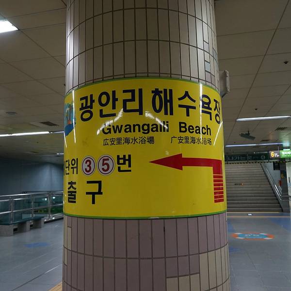 跟着非常明显的指路牌一直走就能到达。大桥亮起灯了,很漂亮,如果不是阴天,拍照效果会更好大桥亮起灯了,很漂亮,如果不是阴天,拍照效果会更好!从庆星大学坐地铁回海云台的途中会路过 广安 里海水浴场站,刚好赶上日落时分,下车去海边转一转。跟着非常明显的指路牌一直走就能到达。