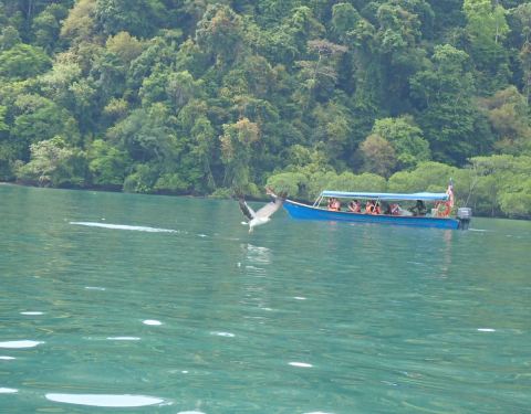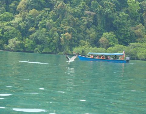1.头一天在珍南海滩靠东侧找到AB,报名参观跳岛游,25马币一个人。 跳岛游,途中有许多小岛,类似越南下龙湾的景色,很漂亮。第一个小岛是孕妇岛,远看它的形状像一个躺着的孕妇。 有条小路向上是个水平如镜的小湖,可以游泳和划船。第二个是狮子岛,船停在岛边,有许多红色的鹰盘旋,般工会扔些肉让鹰抢吃,游客欣赏拍照。第三个就是湿米岛,大约会给2小时的逗留时间