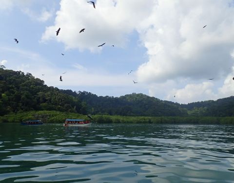 湿米岛是兰卡威著名的景点,这里最有趣的就是为老鹰,当然老鹰不会是我们自己去喂,而是坐船的船老大...湿米岛是兰卡威著名的景点,这里最有趣的就是为老鹰,当然老鹰不会是我们自己去喂,而是坐船的船老大在海上扔了鸡皮,许多老鹰就会飞过来。这场面也甚是壮观,照相机快门咔嚓咔嚓,就怕没抓到好的镜头。