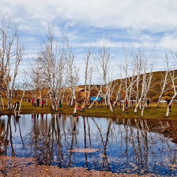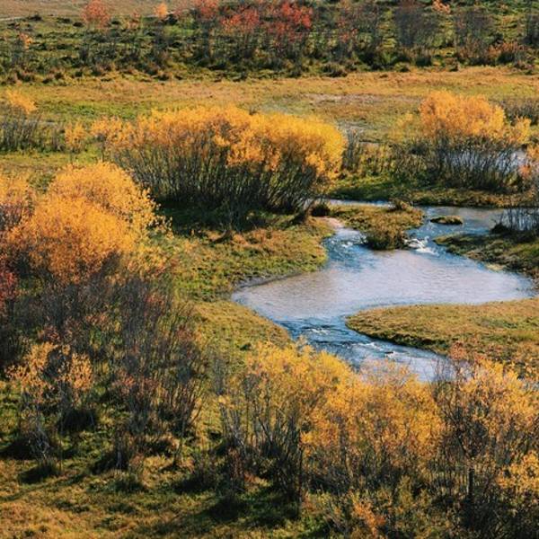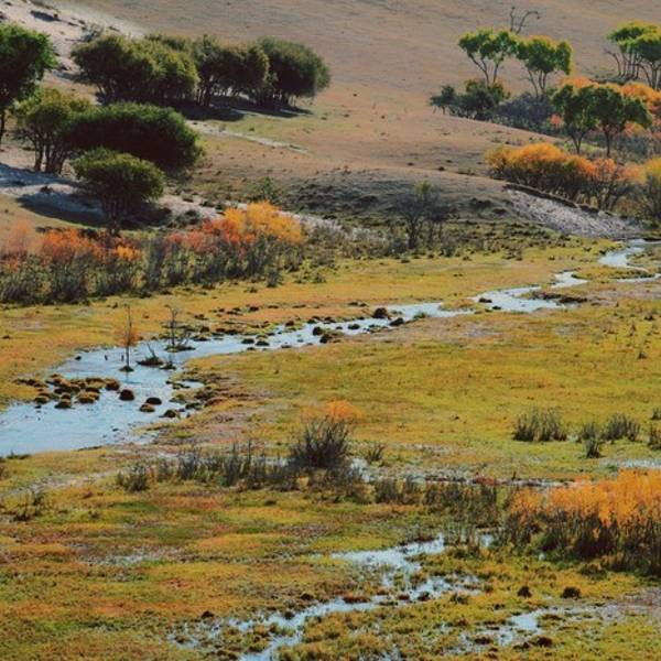 大片的桦树林+溪流,非常幽静。沿溪流可一路走到沟深处,宛如世外桃源。能够在大草原看到这种风景,一定不要错过。