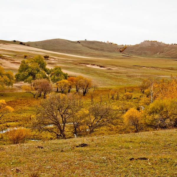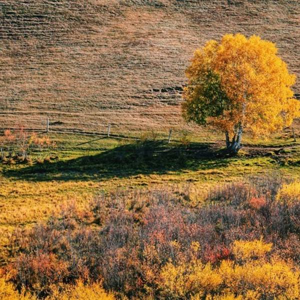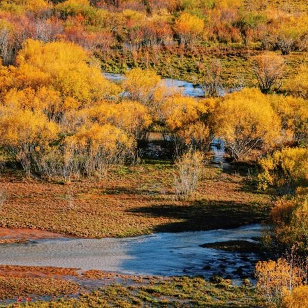 秋季最佳,草原和树木开始变成了红色或黄色,从高处俯瞰,如画如诗。