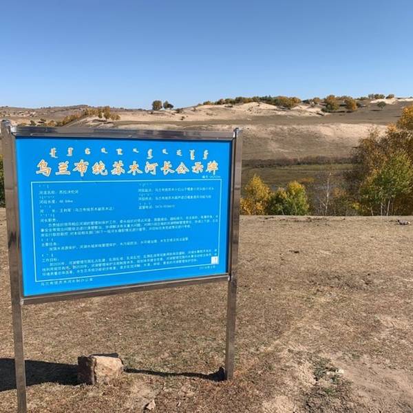 直接导航到【盘龙峡谷】,一路公路,可直到行驶到蓝色标志牌【 乌兰布统 苏木河长公示牌】。