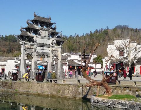 (2)在宏村的老村口(牛角)可以乘宏村-黟县的公交车,每20分钟一班,车票2元。大约20分钟后到达黟县县城,再在黟县汽车站乘汽车到西递便可以,每20分钟一班车,车票2元。