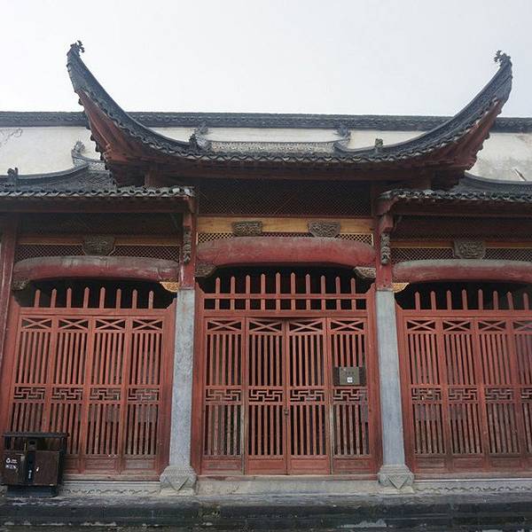 ...字型大门楼,檐下三元门外设有木栏,八字墙用整块打磨光滑的黟县大理石制成,风格独特,极为精美壮观5点14分经过追慕堂门口,已经关门了。