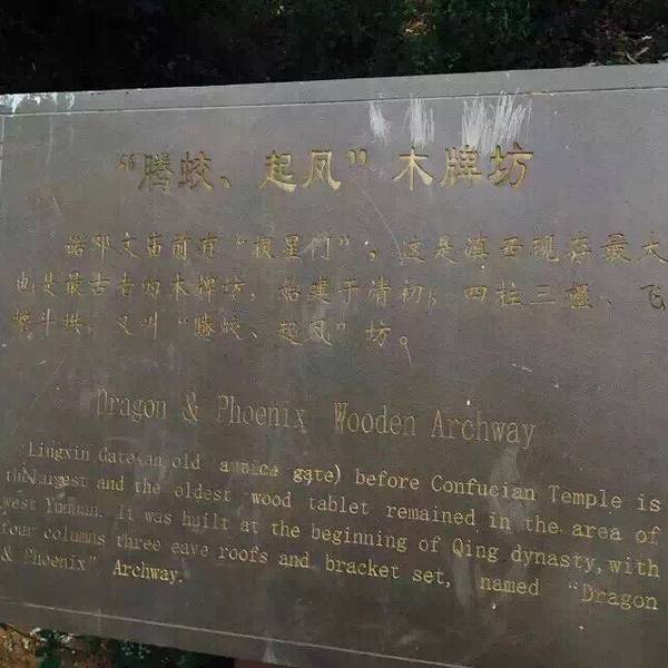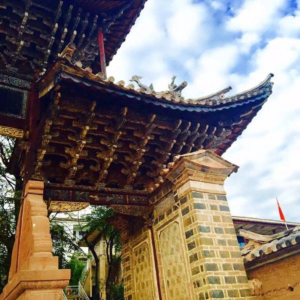 山顶玉皇阁前的“ 棂星门”,是滇西现存最大的古木牌访。古木群掩映着文庙和道观,有趣的是,从龙飞凤舞的棂星门开始,道路一分为二腾蛟起凤棂星门如今每每看见诺邓古村古镇 蛟龙凤静静发散着他的魅力