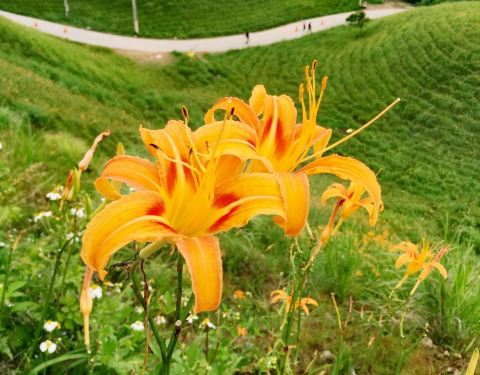 六十石山山上种满金针花,每年7月至10月是六十石山的金针花季,因而往往吸引各地的游客前来观光六十石山山上种满金针花,每年7月至10月是六十石山的金针花季,因而往往吸引各地的游客前来观光。景色和金针花很漂亮,太美了。