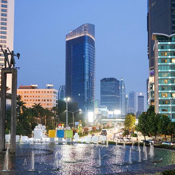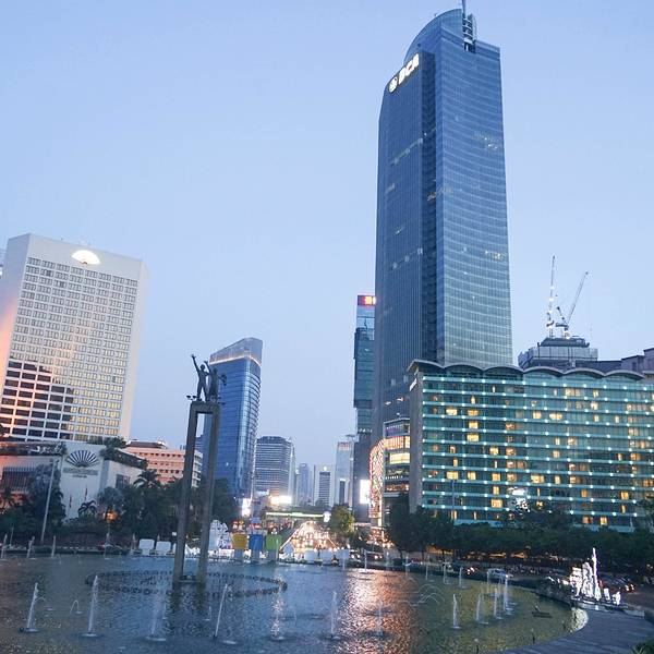 离开雅加达老城我们来到了雅加达市中心的商场plaza indonesia,雅加达的大型商场安保工作都非常周密,进入都需要接受安检。晚餐我们一直在犹豫要不要选择中餐,最后还是选择了日式的牛排板烧pepperlunch。我们两人消费220000RS,两份套餐加两杯饮料,味道还不错的,价格比国内也便宜。雅加达中心的广场,这里曾是或者说一直是雅加达最繁荣的地方。市中心左侧的文华东方与右侧的凯宾斯基都是见证雅加达沉浮的酒店。