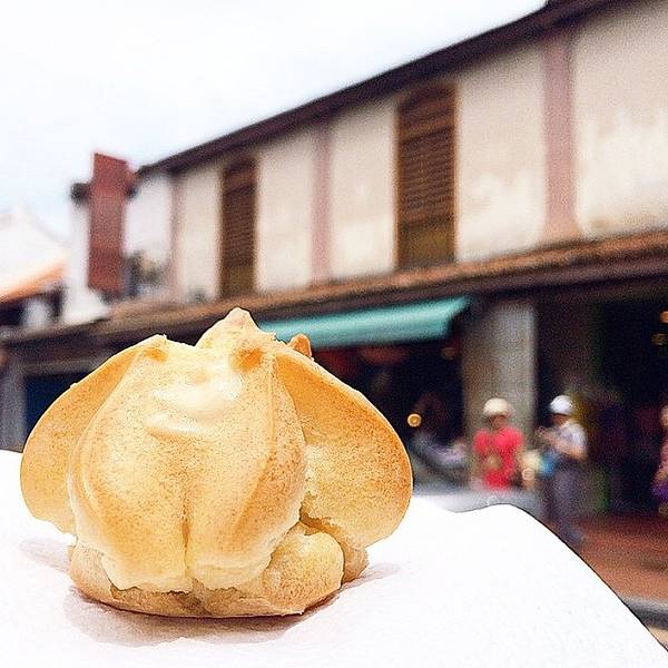 饭后甜点不能少哈哈,决定试一下就在Jonker 88旁边的Taste Better Drian Puff,就是传说中的一口一个的榴莲泡芙,半打10.6RM,然后要了6枚。这个榴莲泡芙在很多电视上都有介绍过的,来马六甲的朋友一定要试。卖泡芙的小女孩叮嘱我说这个泡芙要一口吃下去才过瘾哦。然后迫不及待的把一整个泡芙硬塞进嘴里,然后合上嘴,泡芙在口里爆浆的感觉真的好过瘾,然后满嘴的榴莲的甜香有木有,真的超好吃。 中午大太阳也出来了,小伙伴也到了,开启我们的逛吃模式