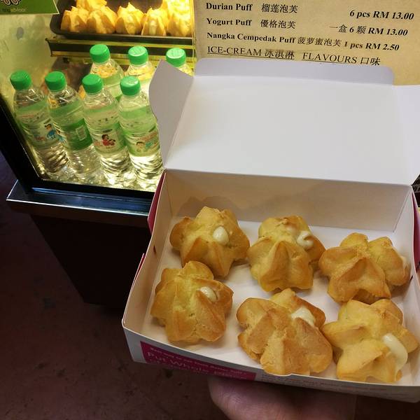 不过榴莲泡芙不宜久放,最佳品尝期限其实最好在一个小时内! 10马币6个,我一口气吃了12个