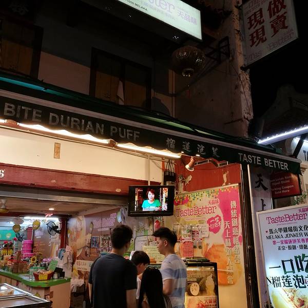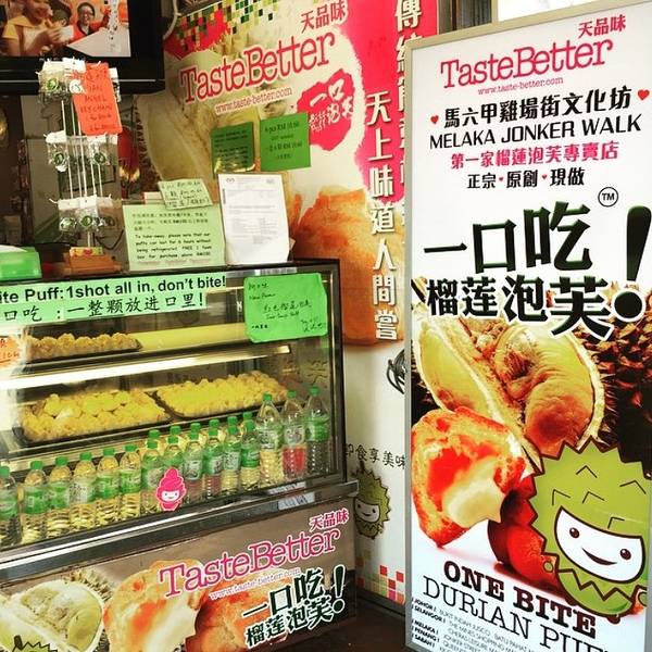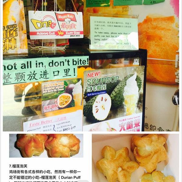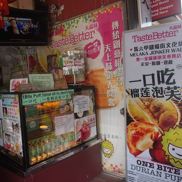 饭后甜点不能少哈哈,决定试一下就在Jonker 88旁边的Taste Better Drian Puff,就是传说中的一口一个的榴莲泡芙,半打10.6RM,然后要了6枚。这个榴莲泡芙在很多电视上都有介绍过的,来马六甲的朋友一定要试。卖泡...