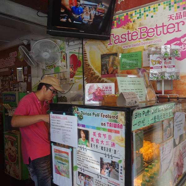 幸运总会眷顾可爱的人儿, 闲晃中遇到了正宗的▲Taste Better 一口吃榴莲泡芙(Taste Better Durian Puff) 在鸡场街里面,真的是一口一个,不然就会爆浆到全身都是, 很香很软的馅,很多电视节目有介绍过。 榴莲...