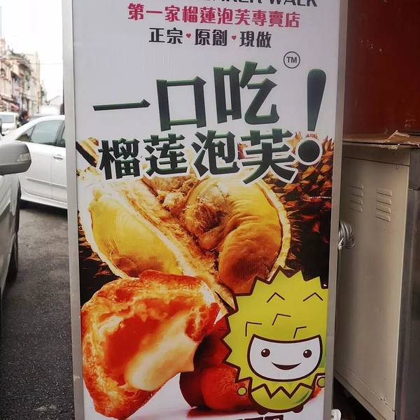 马六甲第二不可错过的美食就是这个榴莲泡芙啦!这家榴莲泡芙的特点就是一定要一口吃完!(可是因为这个泡芙太大了我的嘴巴根本一口放不下,所以我是分了两口吃完的)里面的榴莲芯真的很多,吃的时候一定要小心,...