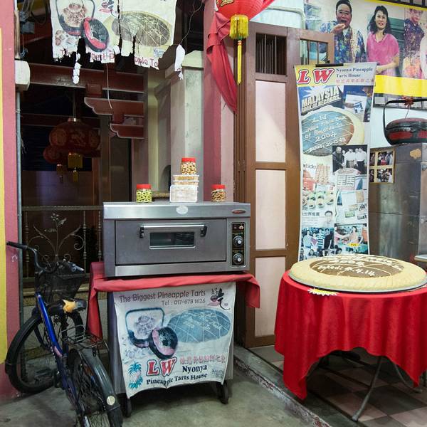 LW娘惹黄梨馅饼在2000年开始在鸡场街附近的姑务街出售黄梨饼,然后2002年进驻鸡场街,在现场烤饼成为了卖点之一,香味四溢,让游客垂涎。2014年烘焙全马最大的黄梨饼列入大马纪录大全,如今大黄梨饼成为招牌,吸引游客前来。 采用植物油制作而成的黄梨酥的饼皮,黄梨馅饼味道清甜,新出的菠萝口味也非常不错,十分适合作为伴手礼。除此之外,LW也售卖原味及班兰口味的黄梨卷。