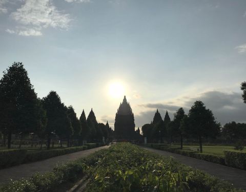 一整个上午就在日惹溜达,感觉也挺悠闲的,非常有东南亚气息的小城市。回酒店询问包车事宜,但是酒店报价太贵。遂联系了昨天晚上送我们到酒店的司机,他推荐了自己的朋友,5小时300,000rp(150RMB),时长差不多是来回车场以及在普兰班南逗留的时间。下午出发赶往普兰班南,去程一小时。因为上午耽误了太多时间,所以下午抵达普兰班南的时候已经有日落的迹象了。在阳光倾斜下的普兰班南寺庙群异常美丽。日光透过云层喷薄而出,笼罩着整个寺庙群。晚上没有直接回酒店,而是去了马里奥波罗大街MALIOBORO,这是日惹最热闹最出名的街区之一,酒店、餐馆、旅行社聚集在此。今天晚上还有一个很重要的目的是在马里奥波罗大街上找旅行社去bromo和ijen。我们告诉司机回程直接送我们去马里奥菠萝街,并询问了旅行社的事宜。他很诧异为什么我们要找旅行社,我们解释了是为后面两天的行程,不会影响我们明天继续包他的车去婆罗浮屠。他向我们确认了几次,不知道他是有意还是无意,把我们送到了一个不知名的街区。这条街确实有很多旅行社,但是旅行社的工作人员几乎都不会英文,更没有去bromo和ijen的行程。