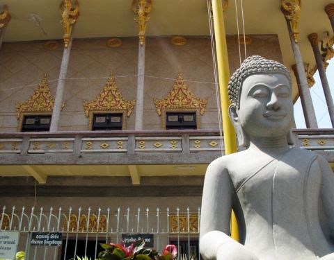 兰卡寺在金边市中心,独立纪念碑西南。始建于1422年,后在1882重建,在红色高棉时期遭到严重毁坏之后,又经修复的。极具东南亚风格,金碧辉煌的。寺里很宁静。