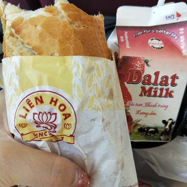 逛完这两个景点,临近中午,也临近离开的时间。来不及找地方坐下来慢慢吃午饭,我们去买了当地的网红法棍当午餐,终于吃到了!味道还阔以,但是有点干,必须搭牛奶饮品。我们对大叻的第一印象还是觉得漂亮干净,非常法式浪漫的小镇。非常适合女生,适合情侣,也适合拍婚纱照,气候舒爽。待了一天后,离开时更加恋恋不舍。 就这样,匆匆离开,前往下一站,芽庄。