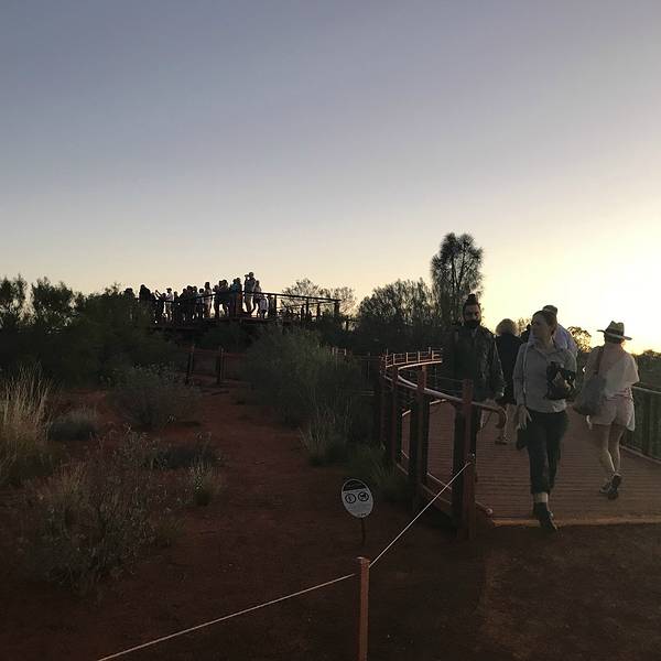 超长的蚂蚁队伍第三天!!终于近距离观看乌鲁鲁了。又是3:30起床!上车前买票,25刀,有效期3天,我好浪费啊只用了一天,然而卖票是违法的一下车去拿饼干和热茶,早上很冷的!摄影发烧友就要走快2步咯,观景台位置好抢手因为在...第三天!!终于近距离观看乌鲁鲁了。又是3:30起床!上车前买票,25刀,有效期3天,我好浪费啊只用了一天,然而卖票是违法的一下车去拿饼干和热茶,早上很冷的!摄影发烧友就要走快2步咯,观景台位置好抢手因为在上面拍到的乌鲁鲁是这样的,没有树木遮挡可是真的太多人,我就走下去去另外一条小道了好近,哈哈真的有变色哦,从黑色到红色,不同角度也不一样看完日出就结束我在这个红色沙漠的所有行程了~好完美没有遗憾