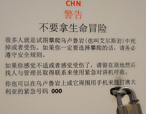 3.虽然澳大利亚政府并没有明确政策不允许攀爬艾尔斯岩,但攀登处仅有一根锁链,十分危险,每年都有攀岩者丧命于此,因此,建议游客不要强行攀登,既是对当地文化的尊重,也是对自己生命的尊重。