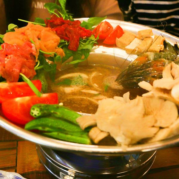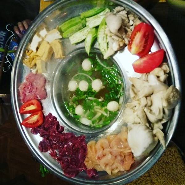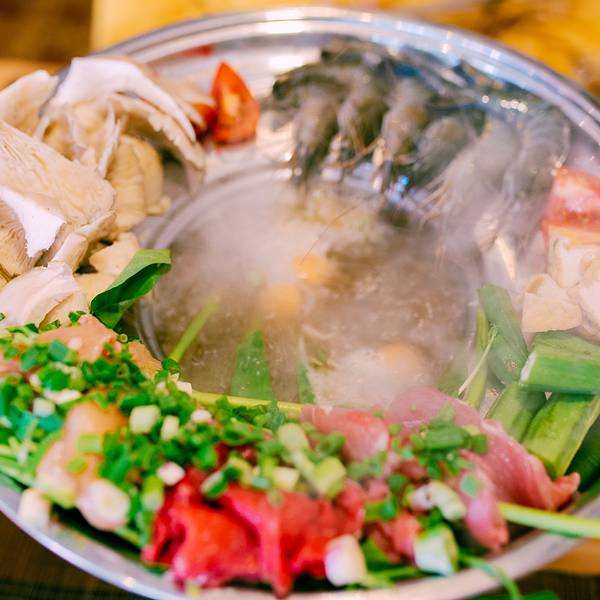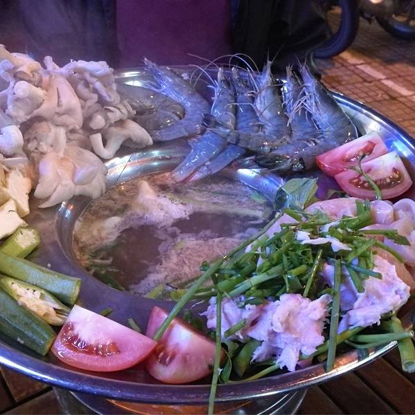 在酒店安顿好后我们准备出门觅食,一直想体验 越南 火锅的我们根据马蜂窝上的推荐轻松找到了这家名叫Goc Ha Thanh Restaurant的店,这家夫妻档经营的小餐厅装修的很有 越南 风情,老板的英语很好也很友善,我们点了一份最招牌的海鲜火锅,有鲜虾,鸡肉,蘑菇,各种蔬菜还配有一份方便面,想吃什么直接从火锅边缘把它们推下去,很有意思。味道很好,温暖了我们的初来山城略感寒冷的胃。