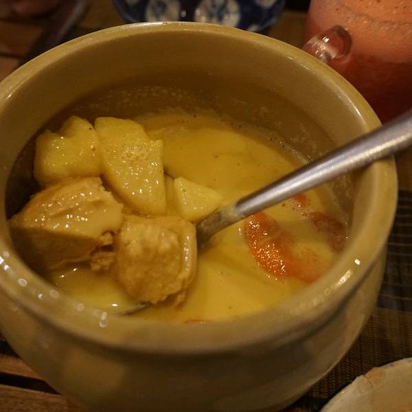 位置没有很难找,跟着导航走就ok了,其实店面不算很大,大概只能够容纳20多人吧。我们到店还算比较早,所以基本没什么人,只有两桌人在吃着饭。我们点的几样东西,椰子咖喱鸡、春卷、炸猪排、砂锅猪肉,味道都还算可以,但是却没有很大的惊喜感,所以其实有点质疑大众点评上这么高的评价,但是没有踩雷,其实也算过得去啦。最好吃的其实还数砂锅猪肉,咸咸的,酱料非常好吃,老板娘会建议你点米饭,就着饭是非常香非常好吃的。人均也是50多,不算贵的价格。