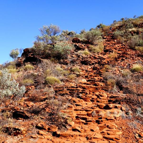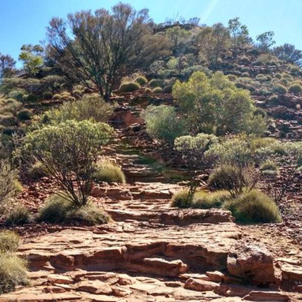 如果你有足够的装备的话,也可以选择两日一夜的22公里盖尔斯径,它连接着国王谷和凯瑟琳泉,可以在野外宿营观赏最美丽的红土星空,是非常受背包客的欢迎的呢!我们的攀登路线便是从这里开始。