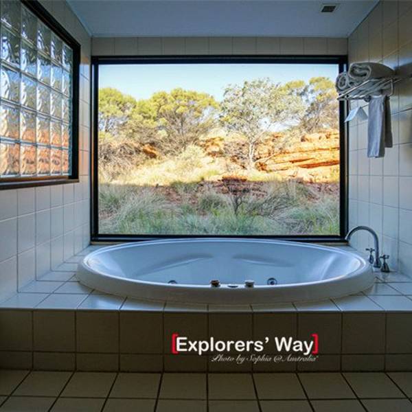 这是一片神奇的土地,从亿万年前的海洋,到荒漠,再到各种奇石的崛起。各种颜色,变化无尽,瑰丽无比。然而我,却开始有些想家了——应该就是酒店里的那个可以看星空看萤火虫的浴缸闹的。能不能给自己放一天的假,什么也不拍什么也不做,就只是泡个澡睡个觉?这就是我房间里的那个露天浴缸,传说中袋鼠会在后花园旁跳过,偶尔也会有野狗来偷窥。