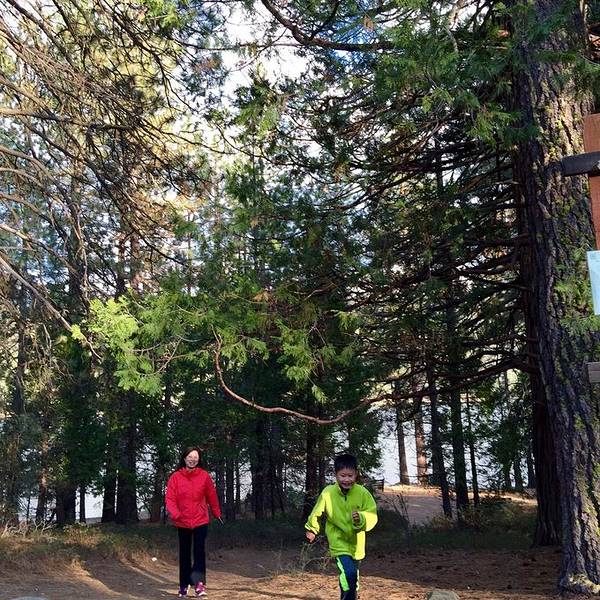 虽然说是冬天去的,但是到中午温度还是到了将近30度。太阳也很...虽然头一晚下了雨,第二天却天气非常好,无风也不太热,国王谷有好几条徒步线路,比较简单的有半小时的,我们选了从峡谷顶上走的三小时的rim walk。