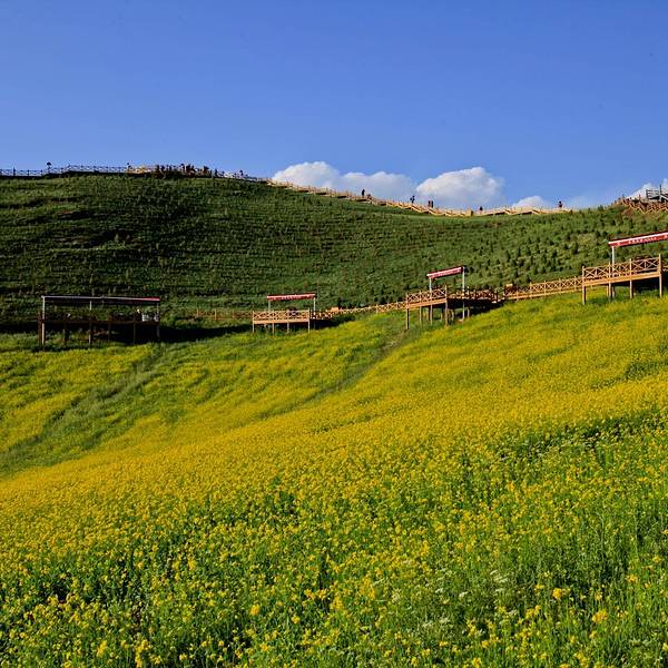 门源油菜花门源油菜花是指青海省海北藏族自治州的门源县一种美丽而蔚为壮观的人造景观。门源县是北方小油菜发源地,是全国乃至全世界最大的小油菜种植区,种植面积达50万亩。