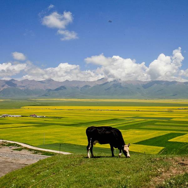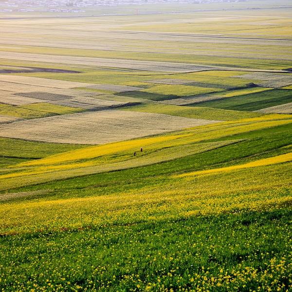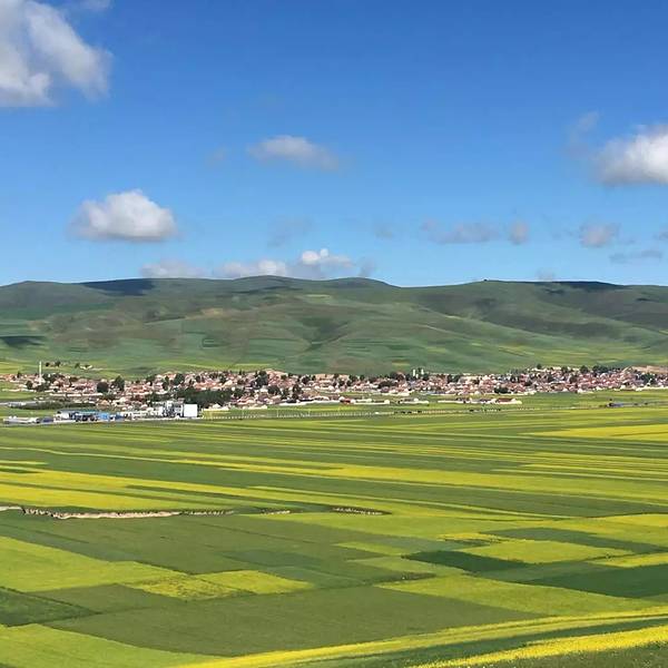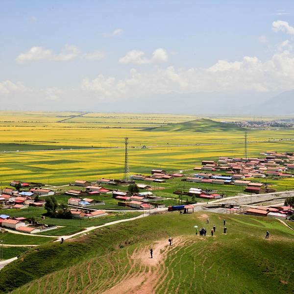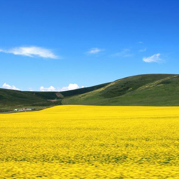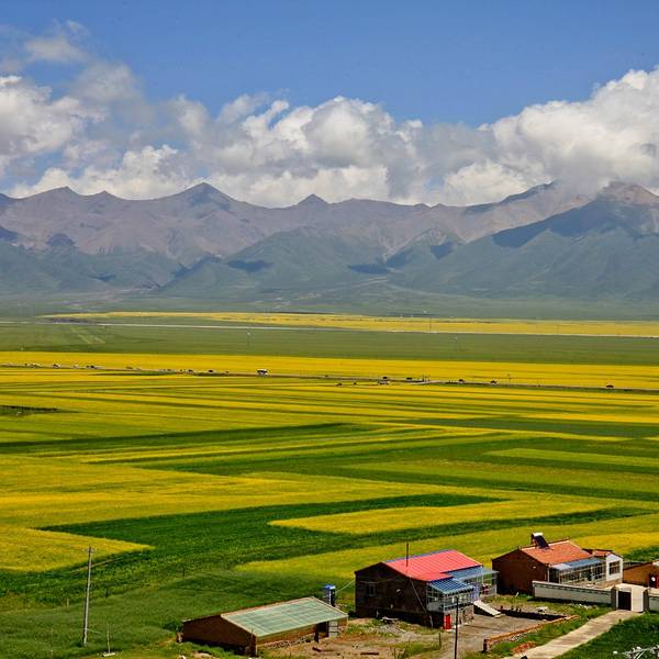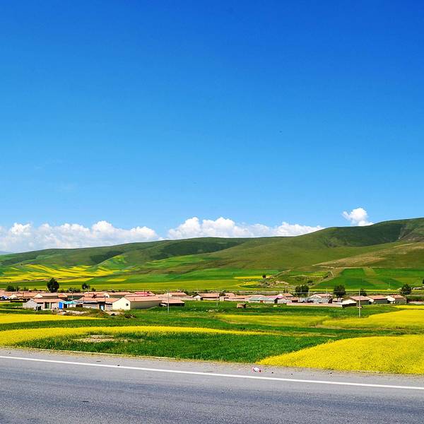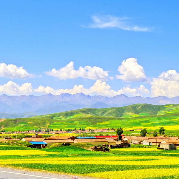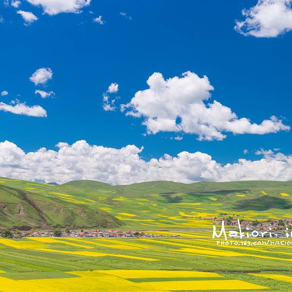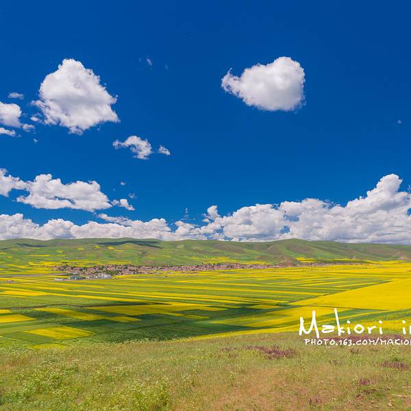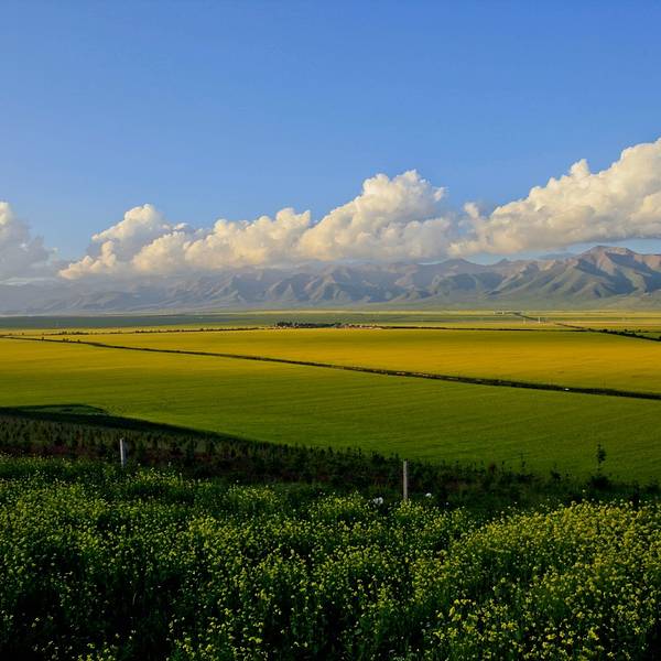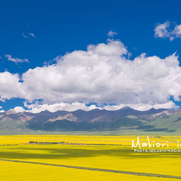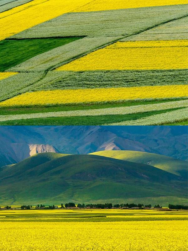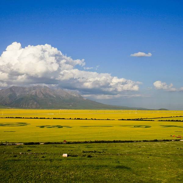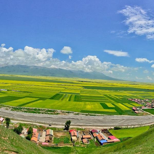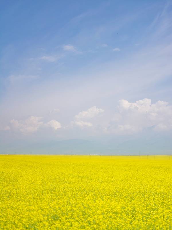 油菜花并不稀奇,哪里都有,但门源的油菜花气势壮观,北依祁连山,西起永安城,东到玉隆滩,南邻大坂山,绵延上百公里,宛如金黄的大海。浓艳的黄花,紧沿着浩门河畔,横越门源盆地足有百公里,在高原深蓝的天空下,与远山近水,村落人家相辉映,近看远观皆为美景。
