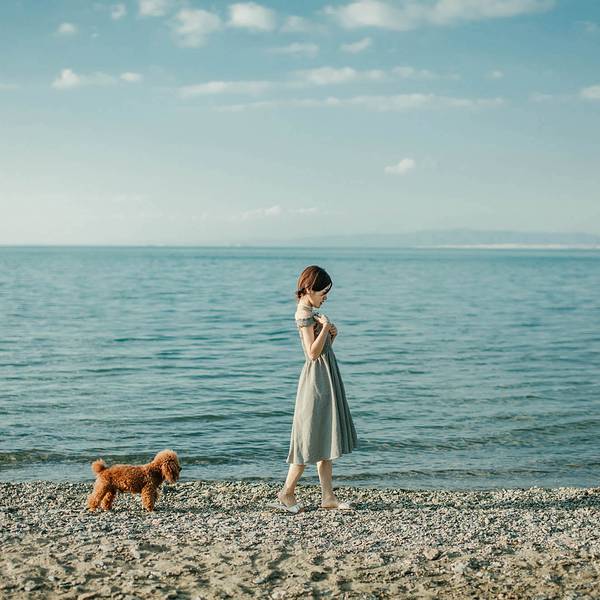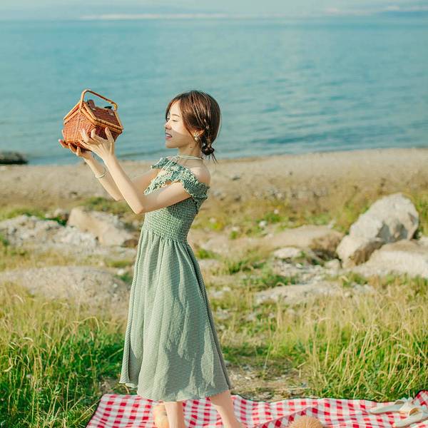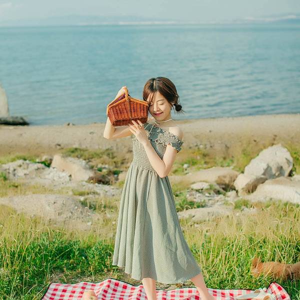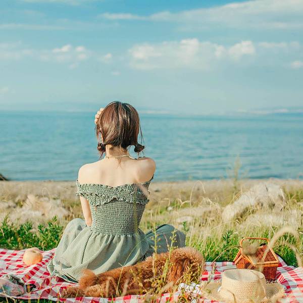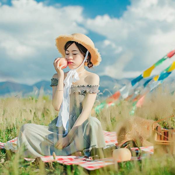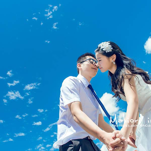 由于整个画面是黄蓝色背景,所以建议身着小清新风格衣服!推荐: