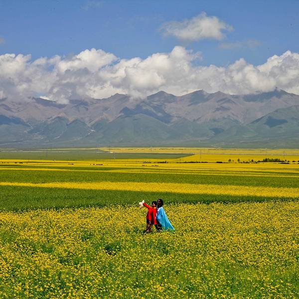 当蓝色、绿色、黄色在门源被大自然交融在一起时,那种震撼人心的美是无法形容的7月的青海湖之所以能那么美,全因大片大片的油菜花作了铺垫,着眼于大,水天之际,绵延不绝,犹如黄色的花毯,怒放的姿态像极了青海的牧民,热情爽朗的笑,毫不保留的对你好,而青海湖花海最壮观的则是门源。我们...7月的青海湖之所以能那么美,全因大片大片的油菜花作了铺垫,着眼于大,水天之际,绵延不绝,犹如黄色的花毯,怒放的姿态像极了青海的牧民,热情爽朗的笑,毫不保留的对你好,而青海湖花海最壮观的则是门源。我们环湖最后一天就到了门源,位于青海海北藏族自治州,是西北地区的主要油料产区。7月的门源,油菜花绵延几十公里,宛如金黄的大海。当蓝色、绿色、黄色在门源被大自然交融在一起时,那种震撼人心的美是无法形容的。门源油菜花海是青海行我心中最美丽最惊喜的景观点,纯净的蓝天云卷云舒,辽阔的草原草青花红,60万亩油菜花形成的百里油菜花海成就了博大壮阔的特有奇观。门源县是北方小油菜生产基地,每年此时还会举行门源油菜花文化旅游节。门源观赏油菜花的最佳时间是7月10日至20日,门源油菜花节与环青海湖国际公路自行车赛都在七月份同步进行。想进油菜花地拍照必须去开放的区域,十元一人,不要随意进入菜地,以免引起纷争。 展开