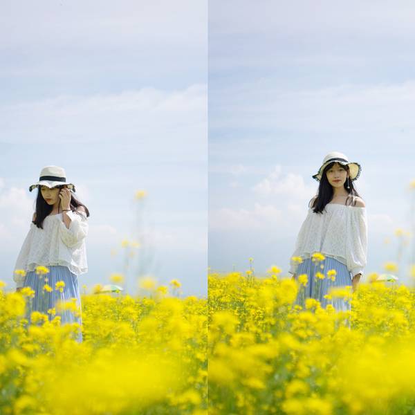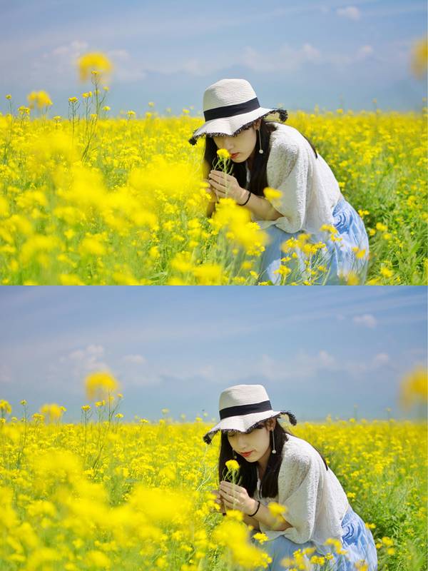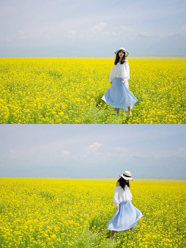 1⃣️如果你是仙女裙,建议加强黄色。不要客气使劲儿加饱和(脸不行,需要局部稳定住脸的饱和)艳丽的黄色和童话仙境一般,和仙女裙很配。