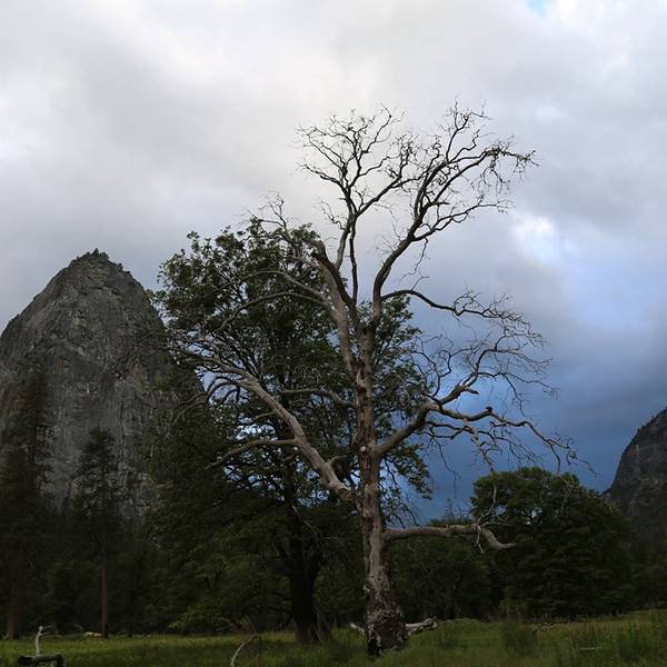 山谷里有两大观景点,Valley View山谷点和Tunnel View隧道点,这两个瞭望台都是观看山谷呈U字型状的最理想位置。远处的半月丘也清晰可见。这里的视野比较开阔,我来的时候时而乌云密布,时而有道道阳光透过浓密的乌云钻出来,撒向山谷,变幻的光线使得山谷呈现出一种动态的美。
