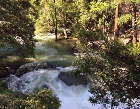 优胜美地山谷浓缩了国家公园的主要景点,来这里的游人不是很多,还要爬一段山路优胜美地山谷浓缩了国家公园的主要景点,来这里的游人不是很多,还要爬一段山路。山谷两侧巨石耸立,绿树成荫,脚边小溪流水,非常的漂亮。