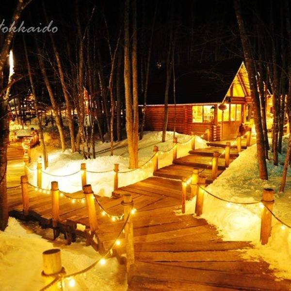 从富良野火车站可以搭乘公车前往精灵露台,但是需要问询一下火车站的服务人员时间,如果时间长的话只能打车了,打车到位于新王子酒店旁边的精灵露台大概2000日元左右,如果人多的话,也是不错的选择,因为巴士的价格也不便宜。 精灵露台和森之时计都是冬天这里的观光地点之一,这里是一片安静的森林,但装点了很多装饰的灯,和一些手工小木屋,如果在加点雪,这里应该会更像童话一般的安静、美丽吧,适合情侣晚上来这里喝杯咖啡,感受下冬天的寒冷和热饮带来的温暖形成的冰火碰撞的冲突感,其实国内也不少这些景观,但是设计和宣传真是太大,据说这里还拍过日剧,从而十分有名。