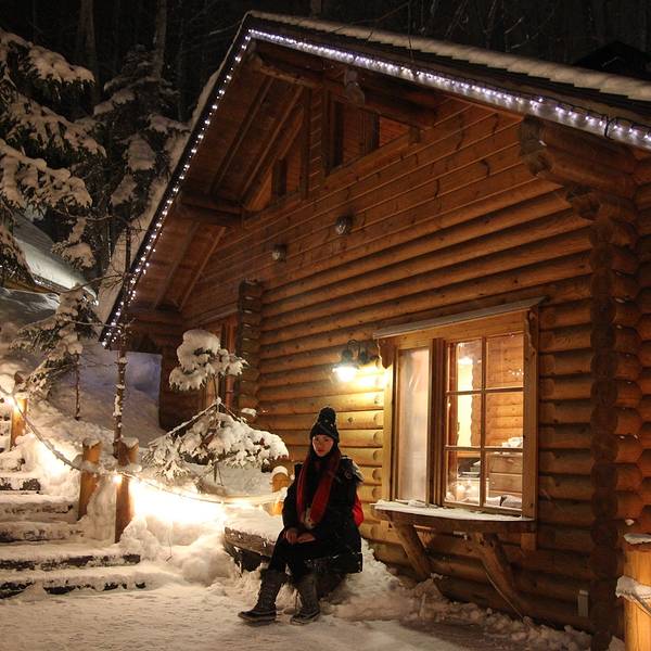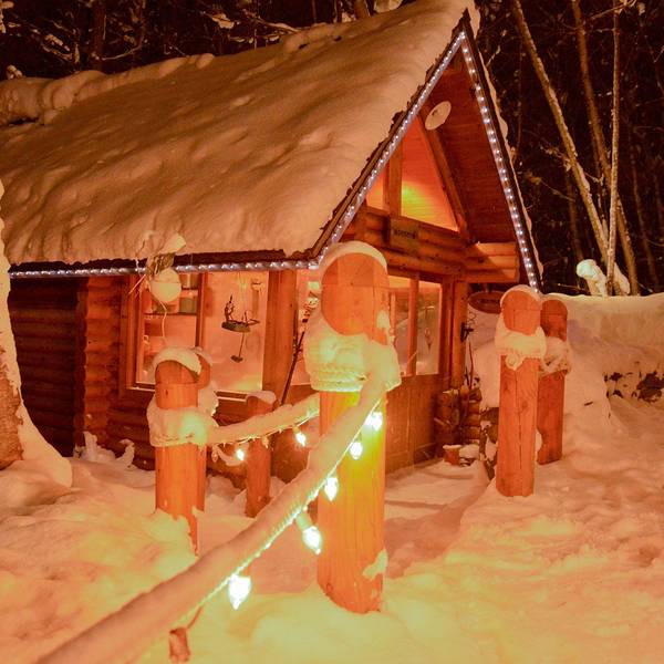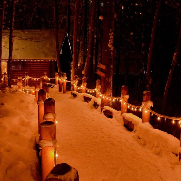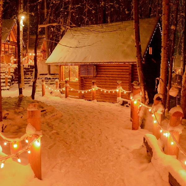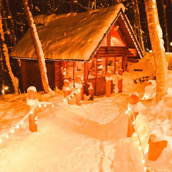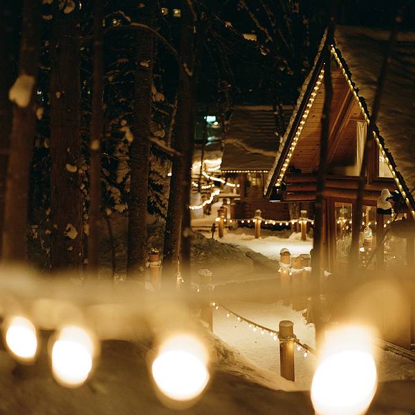 精灵露台和森之时计都是冬季的打卡点之一 并没有很多游客 每一个小木屋门前都有很多装饰灯