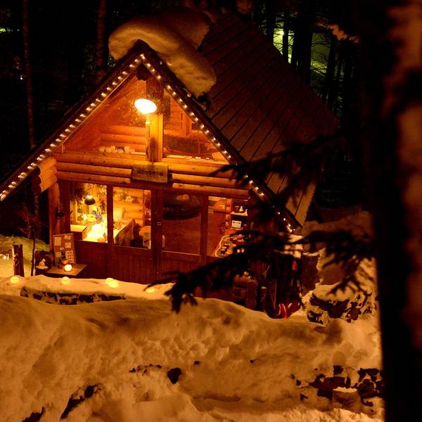 下午三点多我们到达了富良野,入住酒店时,前台的热情大叔向我们推荐了几个买东西的地方和餐馆,还有去精灵露台的套票。Evening Bus在一号站台五点出发,另外也可以乘坐薰衣草号。到达新富良野酒店后,就能看到一个个亮灯的小房子了。其实就是一圈卖手工艺品的小屋,里面的东西很精致。还可以去森之时计咖啡店里坐坐。