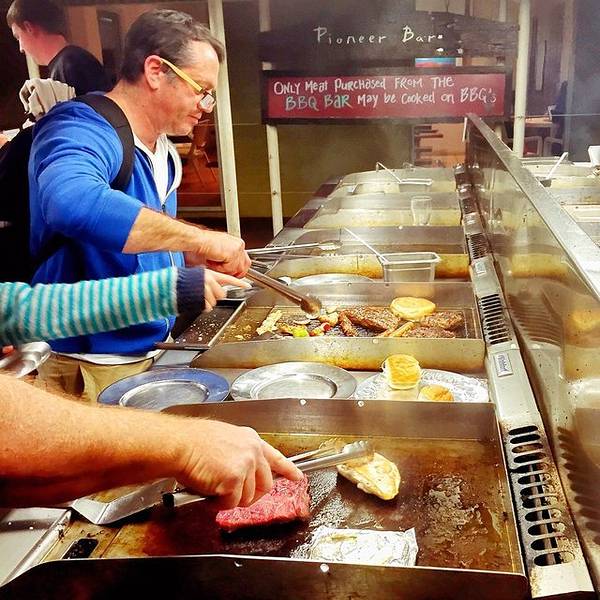 内陆先驱者烧烤位于内陆先驱者酒店,是一家非常“接地气”的餐厅,半户外的环境,长长的木桌椅,热情周到的服务生,澳式自助烧烤的理念,对于那些想追求自由随性的人,先驱者烧烤倒是与周边原始粗犷的自然风貌颇为贴合。这里提供澳大利亚传统自助烧烤,当地特色的袋鼠肉,鸸鹋肉以及鳄鱼肉,免费色拉,各类酒水。这是整个艾尔斯岩度假村最热闹的地方,您可以和同行的旅伴们一边喝着冰镇啤酒热烈的交谈各自的经历,一边欣赏现场乐队的精彩表演。值得提醒的是食材需预先在烧烤吧购买。