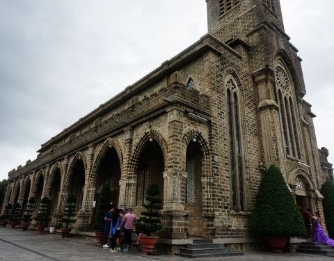 在这里拍照的越南新娘很美哦越南之旅—芽庄大教堂,芽庄大教堂是典型的哥特式建筑,美轮美奂的天窗玻璃,气势恢宏的内部结构,感叹西方人将信仰传播世界!在这里拍照的越南新娘很美哦!