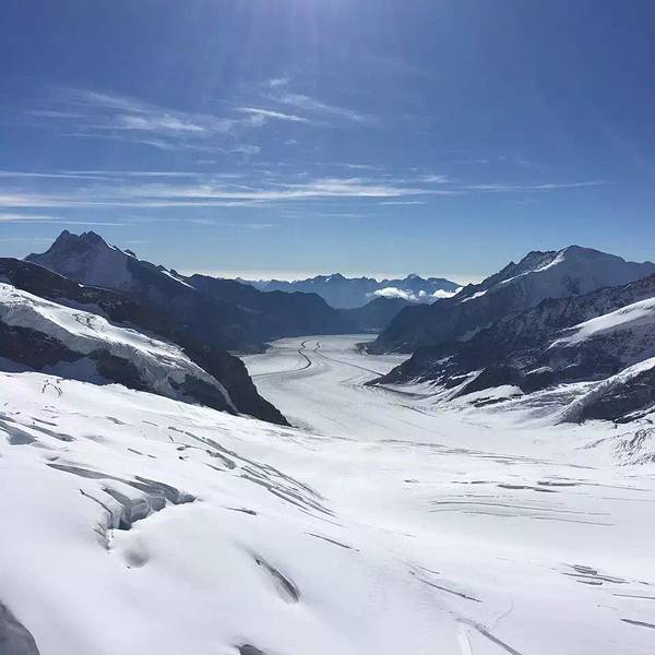 站在终年积雪的少女峰观景台,晴空万里一望无际,纯净的白雪在阳光的照射下熠熠生辉。跌宕起伏连绵的雪山尽收眼底,在这里你还可以看到许多从2000米处徒步而下的游客,来少女峰旅行也是中国游客瑞士之行的必到之处,黄山跟少女峰是姐妹峰。这里的中文导游、中文讲解、中文登山证书一应俱全。