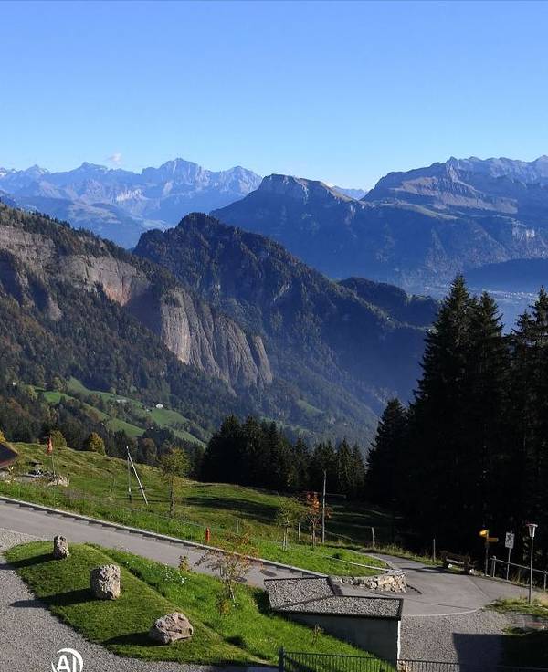 到达山顶观...如果天堂存在,这里便是最接近处,从进入阿尔卑斯山脉那刻开始,连空气也纯净得如清洗过一般,一条条小小的村落,五颜六色的房子被连绵叠翠的群山环抱着。山谷间偶见水流急促的小溪如天上的银河坠落。