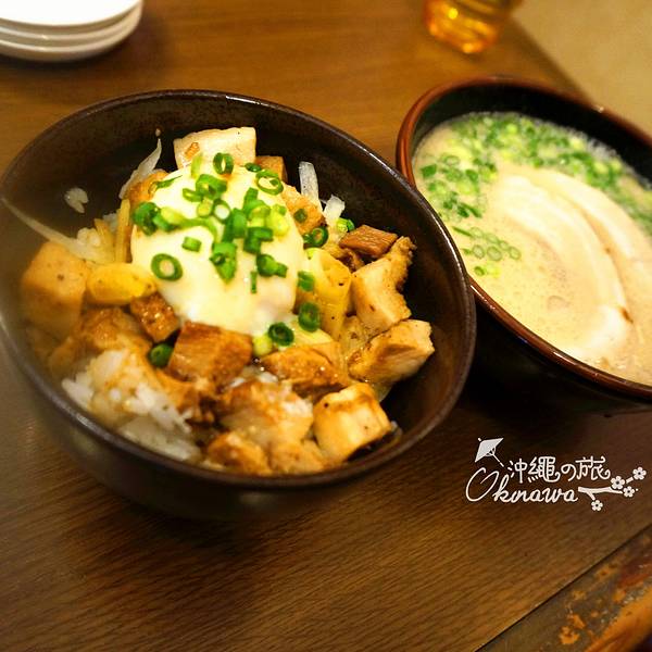 午餐想吃个拉面 正好搜索了一下发现附近的小路上有暖暮 之前在九州的汤布院吃过一次 虽然没有一兰拉面那么好吃 也还算是排的上号 而且冲绳这家是有售卖猪肉饭的 上次煎饺也没吃到 就妥妥的去了 然后就是排队!无尽的排队!起码排了20分钟以上 按照次序 进去买餐券 然后等吃 价格比九州略贵一点点 猪肉饭真的好吃呀呀呀 蛋还是流黄的 拌饭一级棒