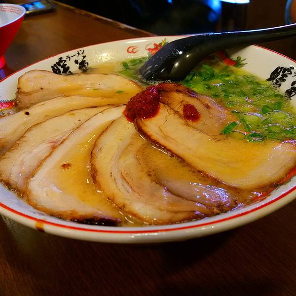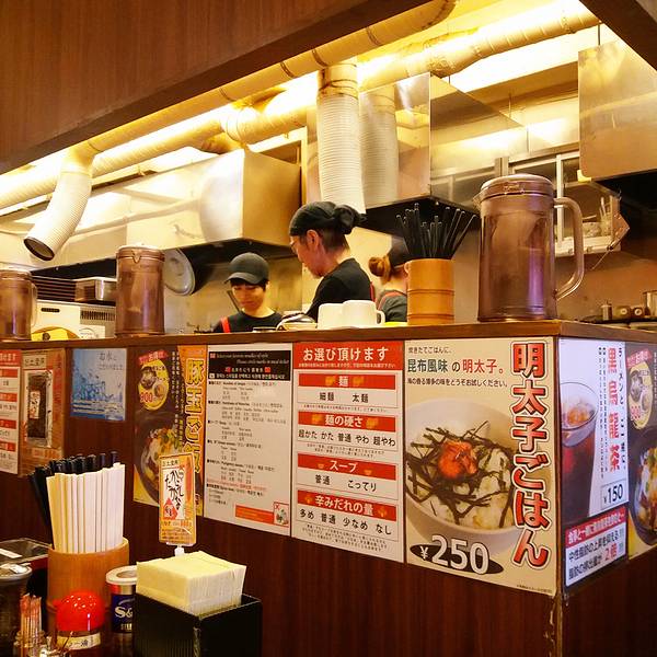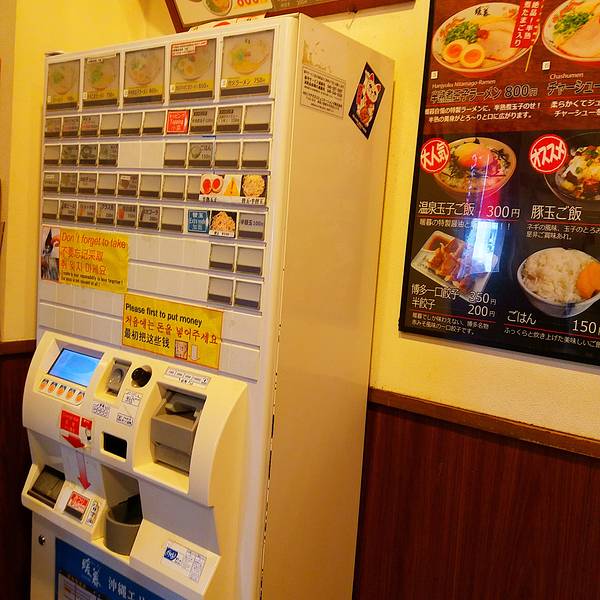 拉面店,九州拉面总选举第一名。门口用机器点单的,后面入座后店员会给你张纸选面粗细、柔软度、汤浓度、要不要葱等。