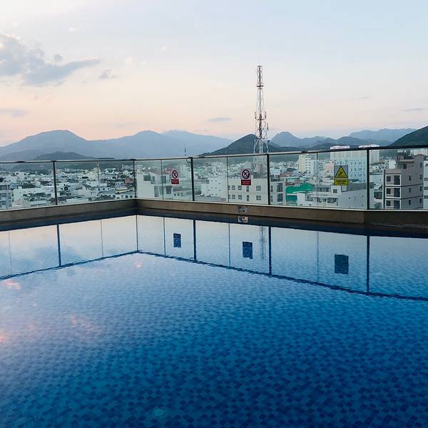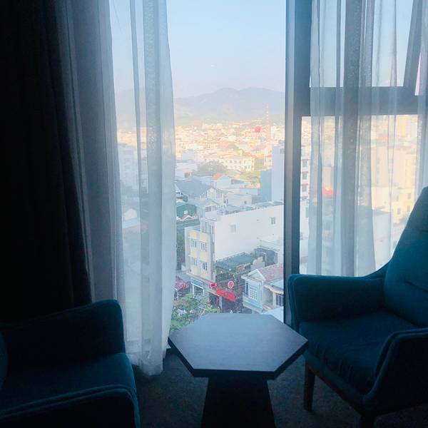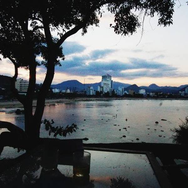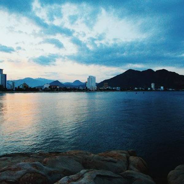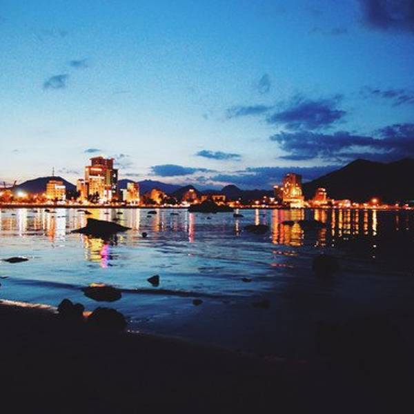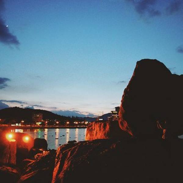 听着海的声音在礁石上坐了很久,天色已晚,城市亮起了霓虹灯,倒映在平静的海水上又是另外一番景色钟岛岬离占婆塔不远,10分钟即到。上去要经过一个斜坡,我们把车停在路边~临走的时候有个保安样子的人过来收费,4万盾。