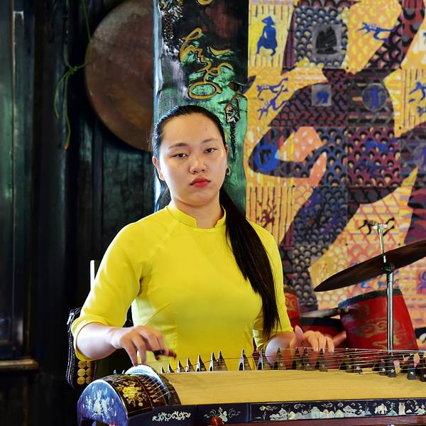 一进门可以免费欣赏越南民族乐器演奏的音乐,都是简单的竹子做的乐器,典型的东南亚音乐风格。