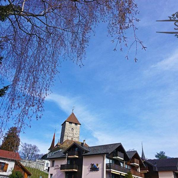 走出火车站,就被这座小镇的美丽所吸引。那绿油油的草地,碧波荡漾的水面,神秘的城堡让我对小城充满好奇走出火车站,就被这座小镇的美丽所吸引。那绿油油的草地,碧波荡漾的水面,神秘的城堡让我对小城充满好奇。拖着行李箱一路下坡走到码头,都遇不到几个人,也没什么车。如果体力不好,不建议从因特拉肯坐船来这里...走出火车站,就被这座小镇的美丽所吸引。那绿油油的草地,碧波荡漾的水面,神秘的城堡让我对小城充满好奇。拖着行李箱一路下坡走到码头,都遇不到几个人,也没什么车。如果体力不好,不建议从因特拉肯坐船来这里然后倒火车,因为从码头到火车站的路是上坡,大概要走半小时。从火车站到码头就是下坡,省力气很多。 展开